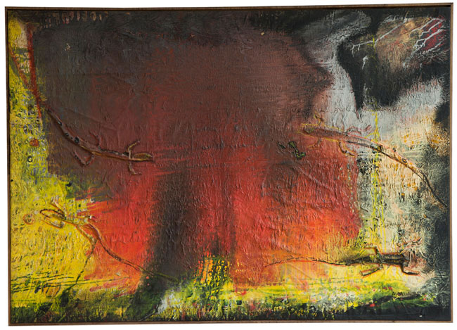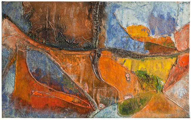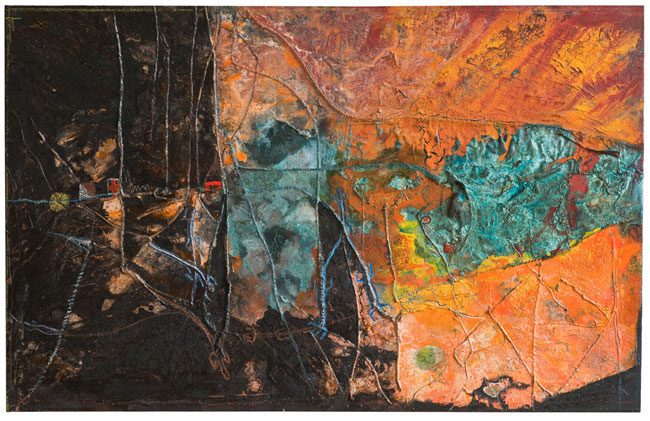 Jute, Acryl, Pigmentfarben auf Leinwand (165 x 120 cm)