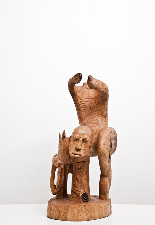 Eichenholz, Metallsockel, Kuhhorn (150 cm)