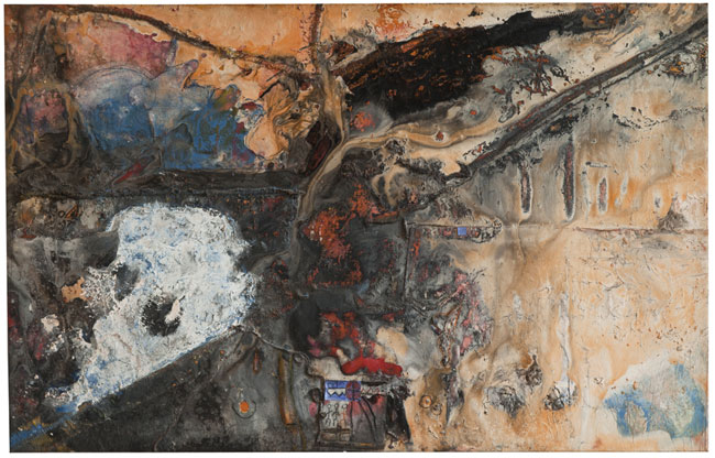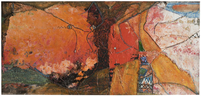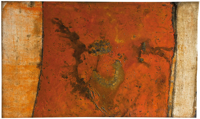 Acryl, Jute, Pigmentfarben auf Leinwand (180 x 115 cm)