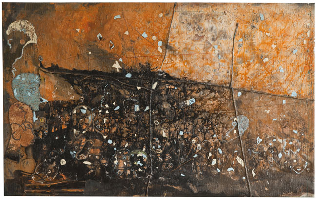 Holz, Acryl, Ölfarbe, Metall, Leinwand (305 x 125 cm)
