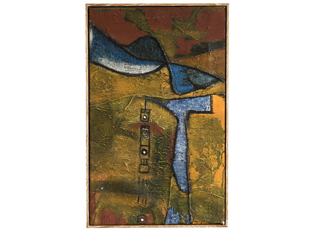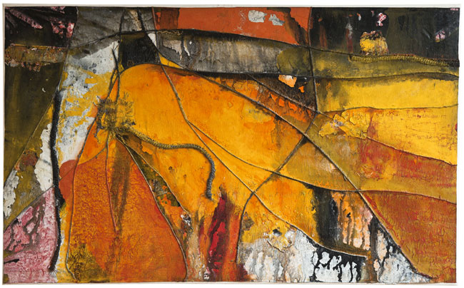 Metall, Acryl, Stoff auf Leinwand (185 x 115 cm)